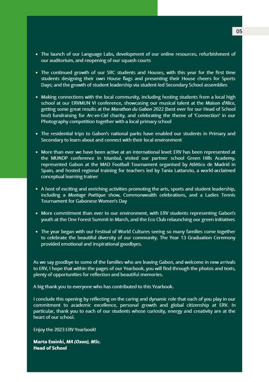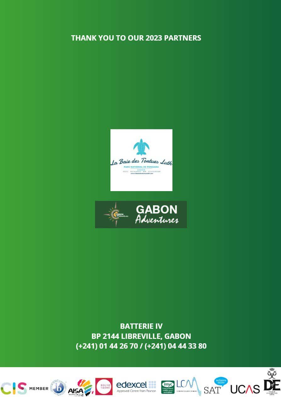 Yearbook 2023 Name Email Address Message 7 + 15 = Submit Home About Privacy / Terms Sitemap Contact Ecole Internationale Ruban Vert Batterie IV, Libreville GABON BP : 2144 +241 (0)74 84 33 80 / (0)11 44 26 70 reception@ecolerubanvert.com admissions@ecolerubanvert.com